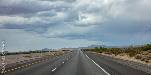 © Rawf8, Naklejka premium Long highway in the american desert, cloudy blue sky