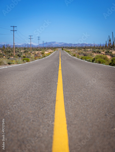 © julie, Naklejka premium Long highway in the desert of Mexico.