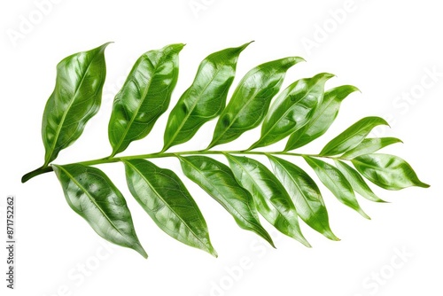 © Alona, Obraz premium Long Leaf. Green Leaves Isolated on White Background in Abstract Plant Concept