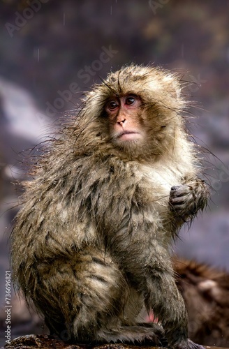 © Maryam, Naklejka premium long macaque sitting on the ground