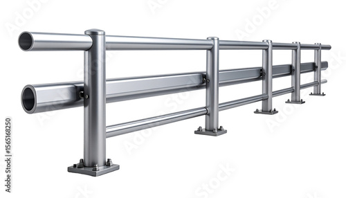 © Ghulam, Fototapeta premium Long metal guard rail with two posts on each end isolated on a white background