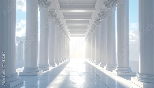 Obraz premium Long perspective of colonnade, bathed in bright, heavenly sunlight