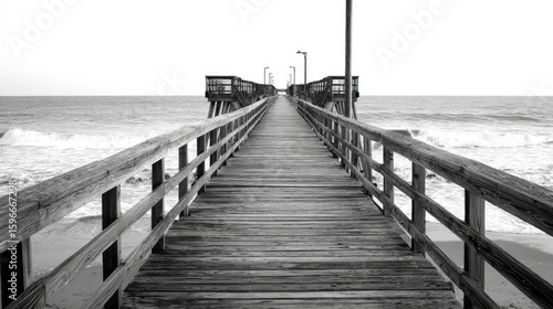 © JSR, Obraz premium Long Pier Extending to the Ocean Black and White Seascape