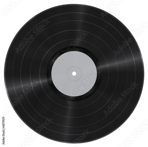 © Valerii Kaliuzhnyi, Naklejka premium Long play vynil record with blank paper label isolated on white