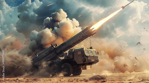 © QAISAR, Obraz premium Long range air and missile defence system in firing mode