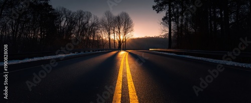 Fototapeta premium long shadows cast a melancholic chill over the empty road as daylight wanes