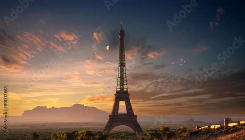 © basit, Naklejka premium long shot of the Eiffel Tower
