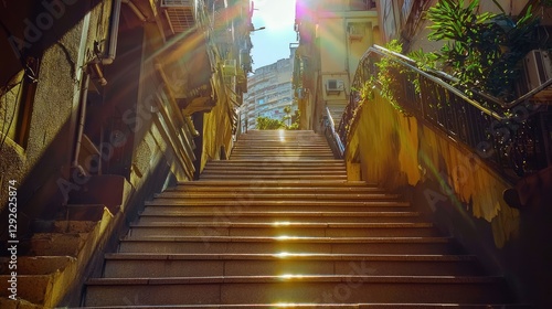 © Andi, Obraz premium Long staircase in a city illuminated by bright sunlight