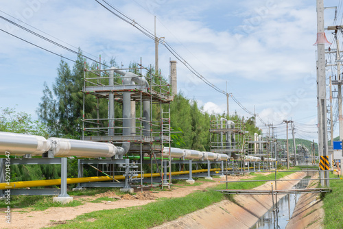© Cherdchai, Fototapeta premium Long steel pipes setup for new industry