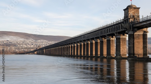Obraz premium Long Stone Bridge over River, Cityscape Background
