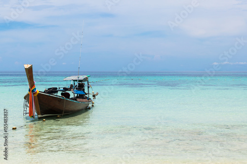 Fototapeta premium Long tail boat moored at the beach in Thailand