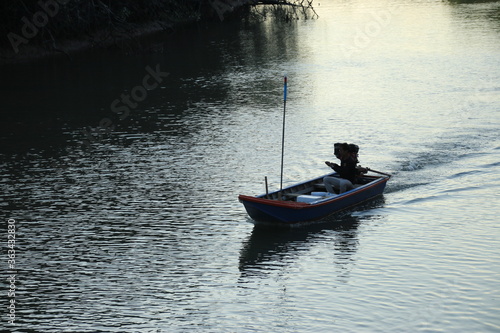 Naklejka premium Long tail boat of fishermen on the sea