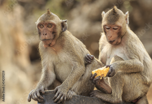 Naklejka premium long-tailed macaque eating food