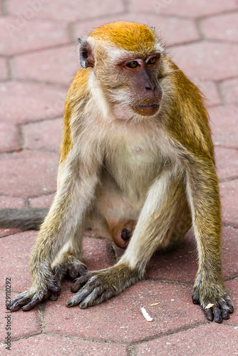 Obraz premium Long tailed Macaque monkey at a Hindu Temple (Batu Caves) in Malaysia