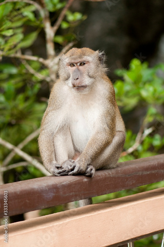 Obraz premium Long-tailed Macaque on the railing