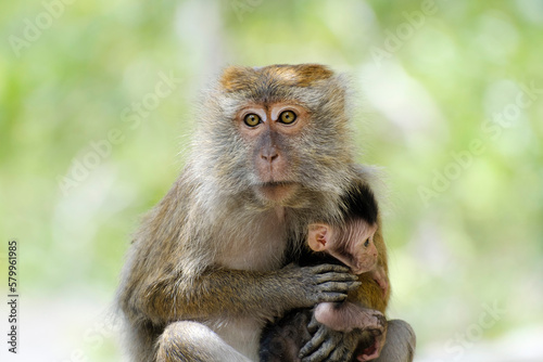 © nexusby, Fototapeta premium long-tailed macaque with a baby
