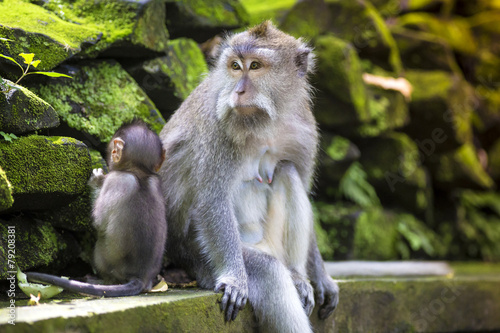 Fototapeta premium Long Tailed Macaque with her Infant