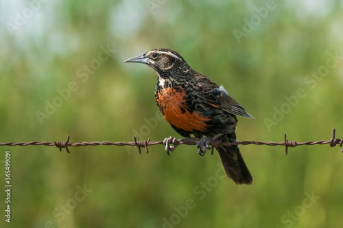 © foto4440, Fototapeta premium Long tailed meadowlark, perched on a fence, Patagonia,Argentina
