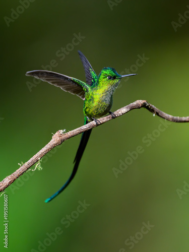 Fototapeta premium Long-tailed Sylph Perched on Branch with Wings Open