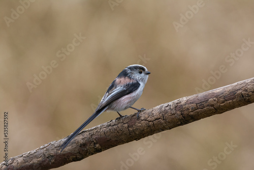 Fototapeta premium Long tailed tit, Aegithalos caudatus, perched on a tree branch. Side view,...