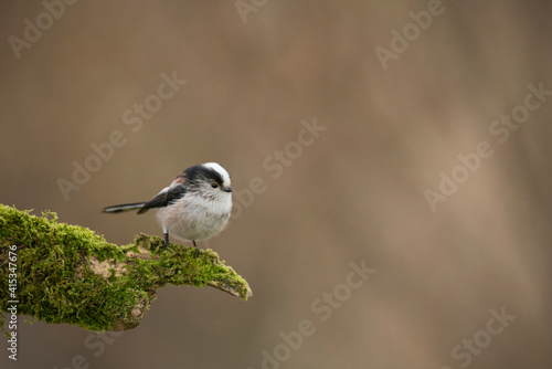 Obraz premium Long tailed tit, Aegithalos caudatus, searching for food, late winter in Oxfordshire