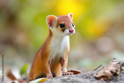 © Vlad, Fototapeta premium Long-Tailed Weasel. Cute Ferret Wildlife in Nature Habitat