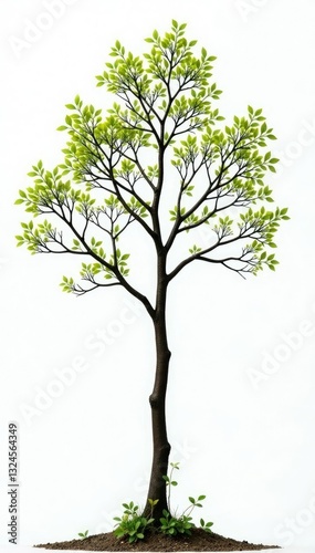 © Hugnaka, Obraz premium Long thin branches stretch outwards from a central point, nature, foliage, isolation