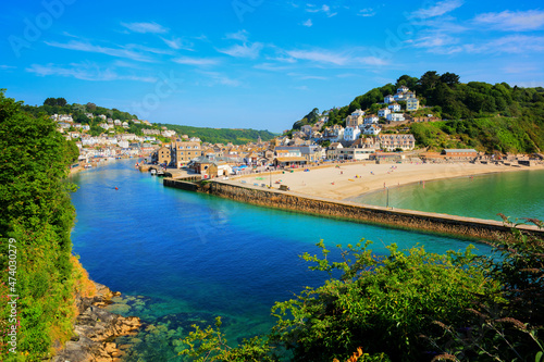 © acceleratorhams, Fototapeta premium Looe Cornwall town and beach and harbour with beautiful blue sea and sky south west UK