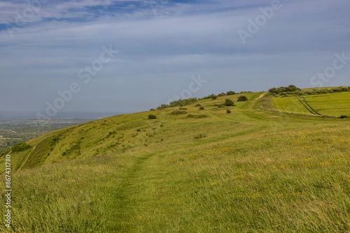 © lemanieh, Obraz premium Looking along a grass pathway on Ditchling Beacon