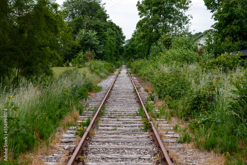 © Christian, Obraz premium Looking at a railroad surrounded by trees on both sides