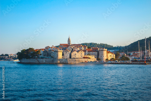 Fototapeta premium Looking at Korčula from a boat in Croatia