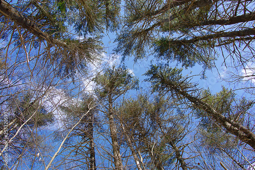 Obraz premium Looking at the sky through the pines