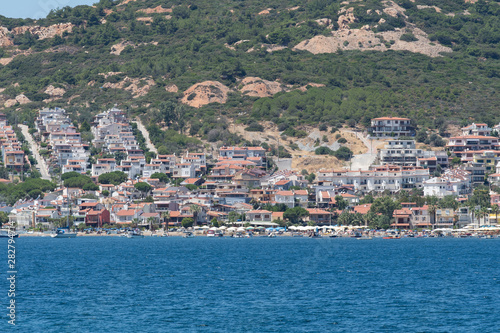 Fototapeta premium Looking at view of Yenifoca waterfront. Yenifoca is a town and district in...