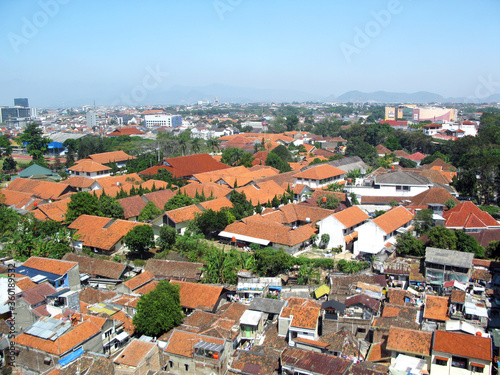 © LilyRosePhotos, Obraz premium Looking down at Bandung city in West Java, Indonesia.