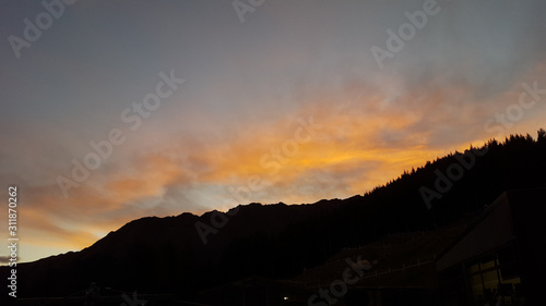 © sayrhkdsu, Fototapeta premium Looking down at Queenstown with beautiful lake from top of mountain