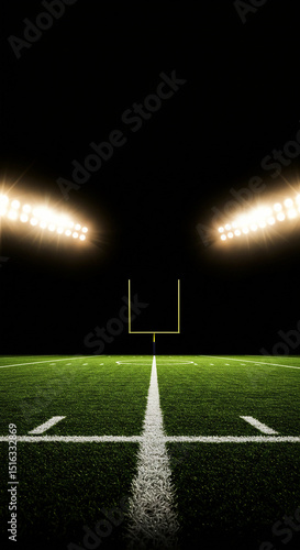 © Vanier Johanne, Naklejka premium Looking down empty sports field at night with bright stadium lights