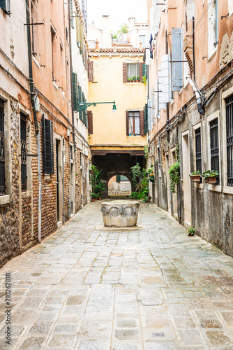 © Jason Yoder, Fototapeta premium Looking down the narrow streets or alley of Venice