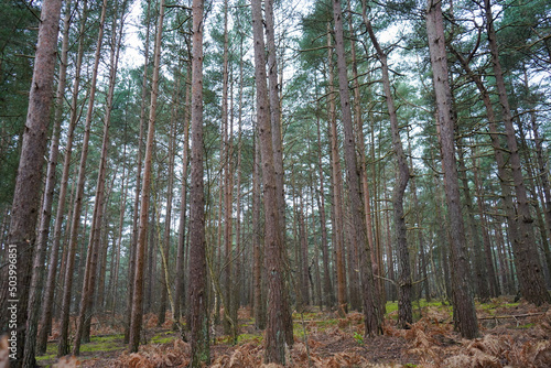 Obraz premium Looking in to a pine tree forest
