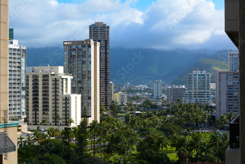 Fototapeta premium Looking Through Waikiki Towards Diamond Head