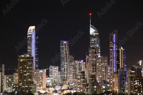 © blatted, Fototapeta premium Looking towards Surfers Paradise at night