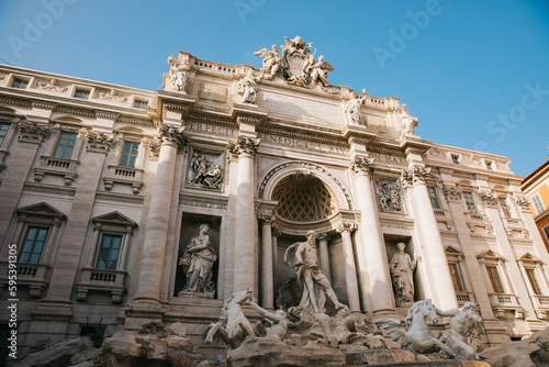 © MylesK, Fototapeta premium Looking Up Angle View of the Trevi Fountain on a Clear Blue Day in Rome Italy