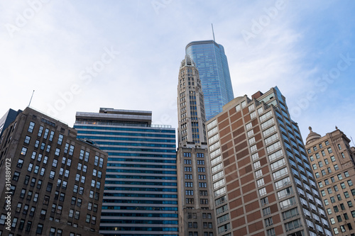 Naklejka premium Looking up at a Variety of Skyscrapers in Downtown Chicago