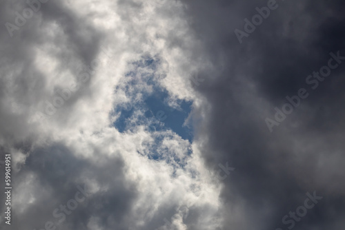© Mary Struck, Obraz premium Looking up at gray and white clouds against blue sky