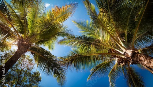 © Darlene, Fototapeta premium looking up at palm trees in queensland