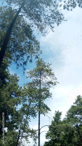 © arrafi, Fototapeta premium Looking Up at Pine Trees and Sky
