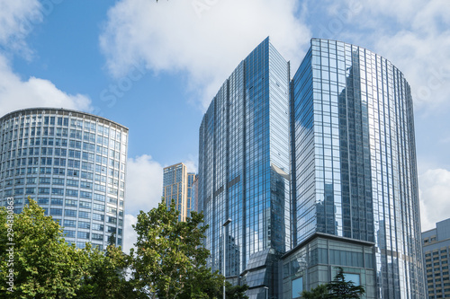 © onlyyouqj, Obraz premium Looking Up Blue Modern Office Building