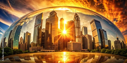 © ThingsTheRound, Obraz premium Looking up from the ground, a massive, shimmering heat dome appears to engulf the city, with skyscrapers distorted, as if melted by the sun's rays.