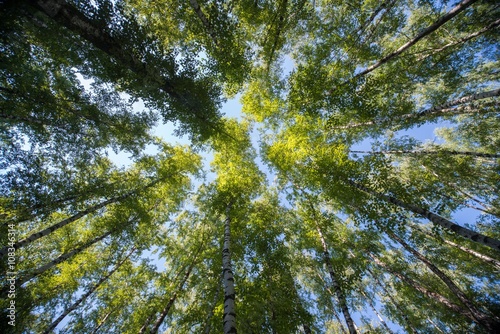 © skrotov, Fototapeta premium Looking up in Forest - Green Tree branches nature abstract