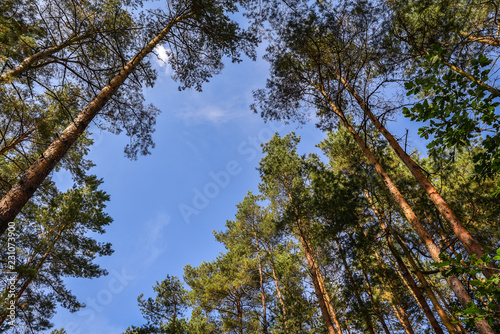 © GetFocusArt, Obraz premium Looking up to Forest - Green Tree branches