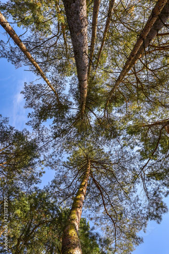 © GetFocusArt, Obraz premium Looking up to Forest - Green Tree branches
